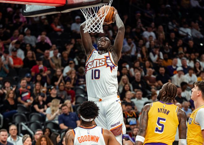 简单回顾比赛,开场东契奇就军训马鲁阿奇,艾顿自投自抢,里夫斯行进间高抛命中。中段里夫斯带领拉拉维亚和艾顿上分,东契奇也给艾顿送空接,湖人很快拉开分差。湖人替补被对手追回一些分数后,第二节中段东契奇和艾顿回来,东契奇喂饼尼克史密斯,随后里夫斯联合东契奇下起三分雨,东契奇手感火热,带队守住两位数领先优势。太阳这边主要依靠贾里德巴特勒单打强攻,第三节东契奇和里夫斯内外开花,不过当东契奇下场后,湖人替补席包括里夫斯还是无法守住优势,第三节后半段又被太阳反超。