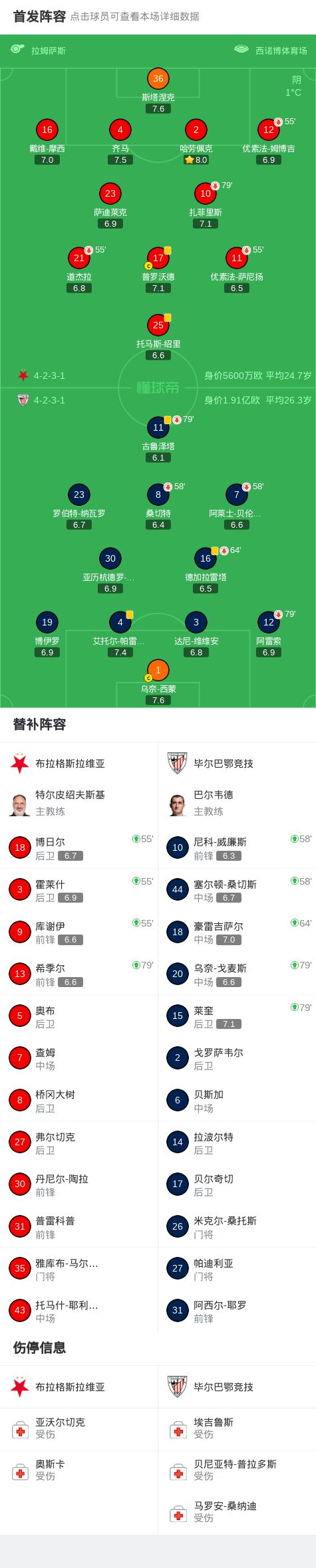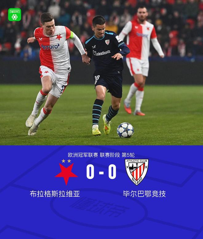 北京时间11月26日欧洲冠军联赛 联赛阶段 第5轮,布拉格斯拉维亚对阵毕尔巴鄂竞技。最终比分布拉格斯拉维亚 0-0 毕尔巴鄂竞技。